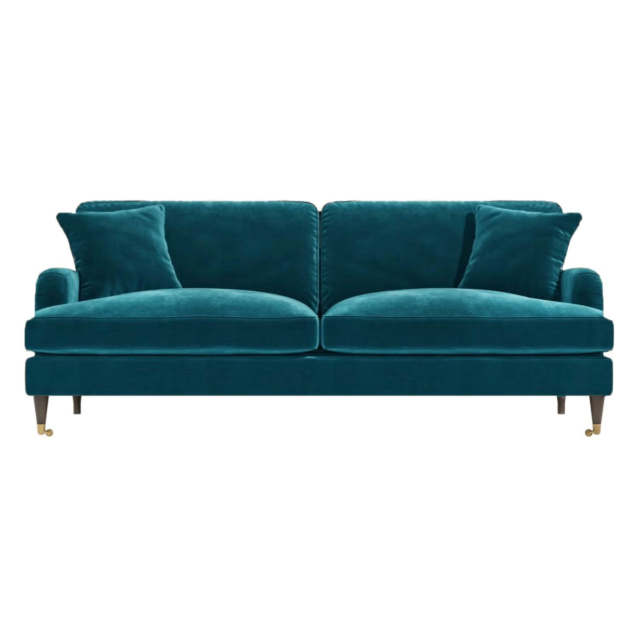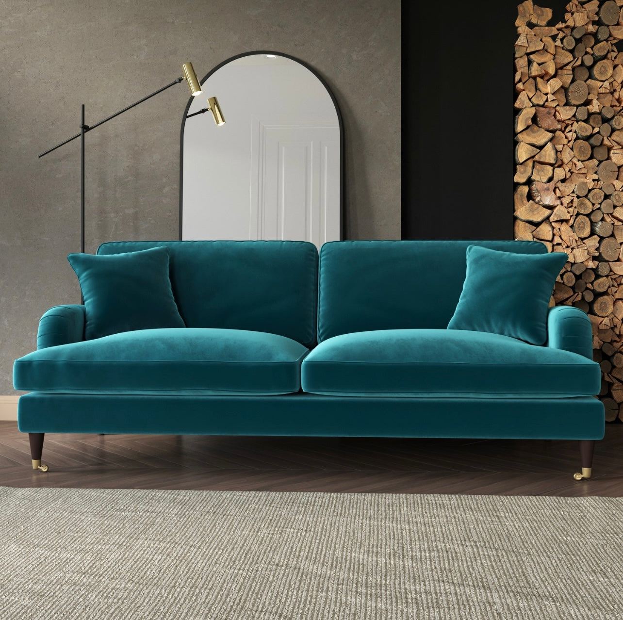 Beautifully tailored and upholstered in teal, it brings a splash of colour to your living space, making it the perfect statement piece. It comfortably seats four and comes accompanied with two matching throw cushions which add a final flourish of elegance.