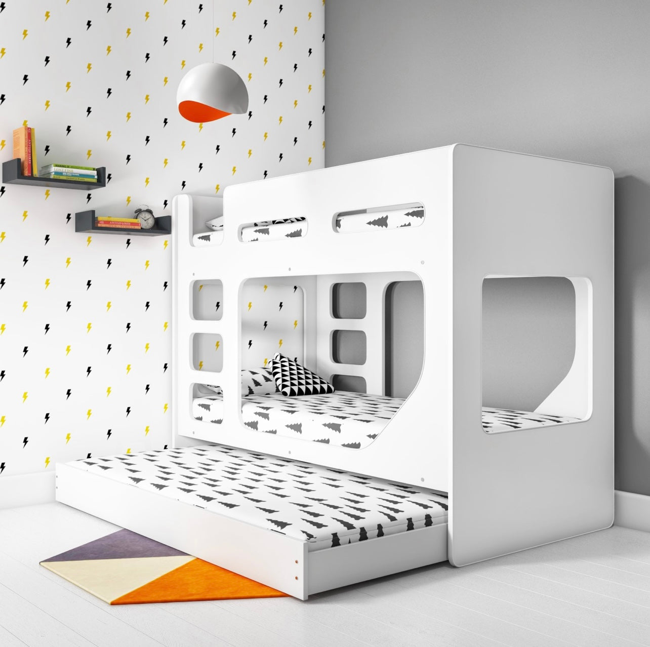 All in white, fresh and bright, this bunk bed easily coordinates with any bedroom décor, whether it be blue and football themed or pink and princess themed. With a compact design that features a pull out trundle which saves on storage space, giving your little ones plenty of room to play. The bunk bed has a strong wooden build that will last the test of playtime and a hardwearing finish that's super easy to wipe clean, ideal for sticky little fingers.