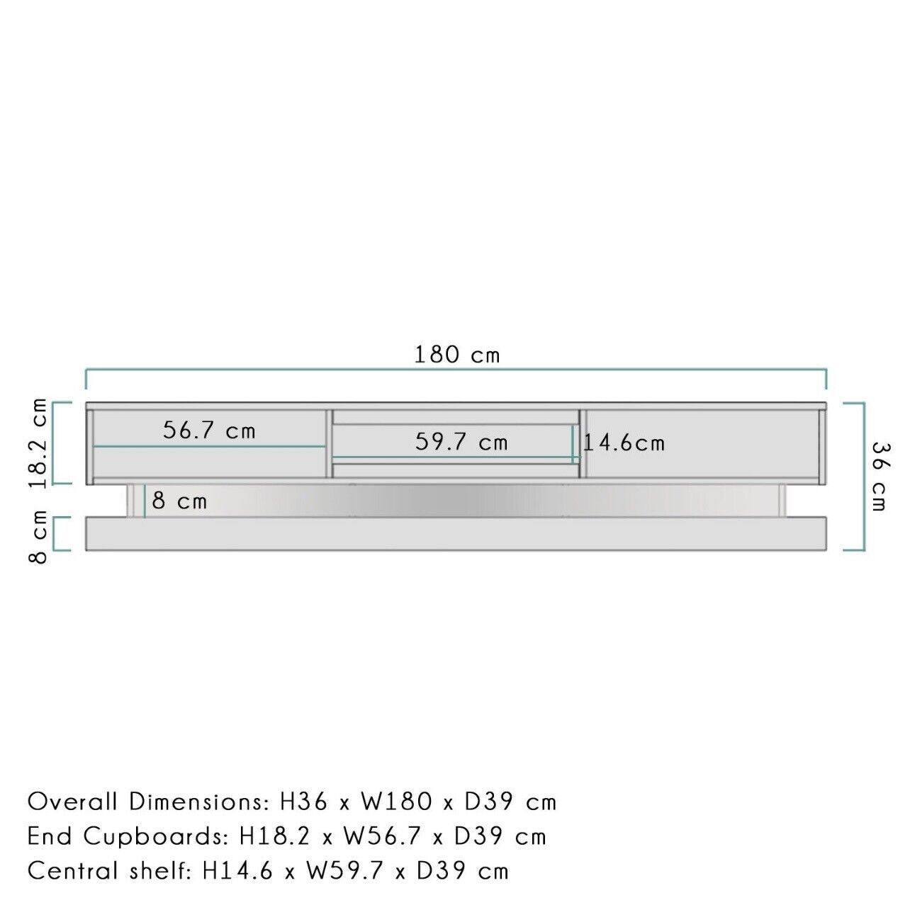 What sets this TV unit apart from the rest is its contemporary LED lighting. With a wide variety of colours and effects to choose from you can have some real fun with this unit. Select a colour to set the mood, autumnal colours for a cosy night in or fresh vibrant colours for a friendly gathering, the choice is yours. The lighting simply plugs into the mains, using little energy and with an included remote control it’s super easy to whiz through all the options.