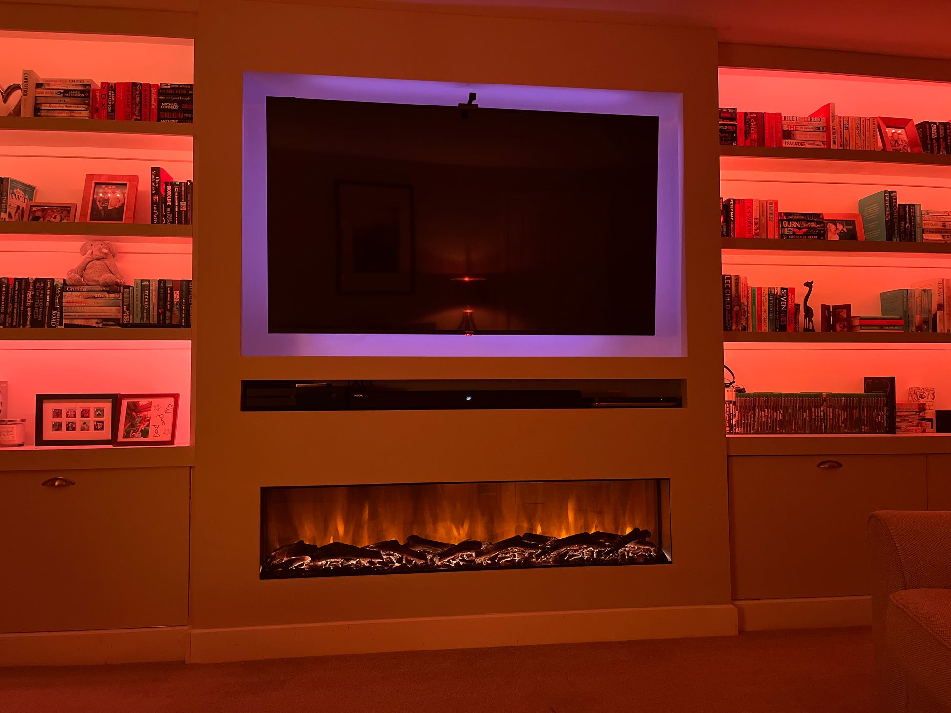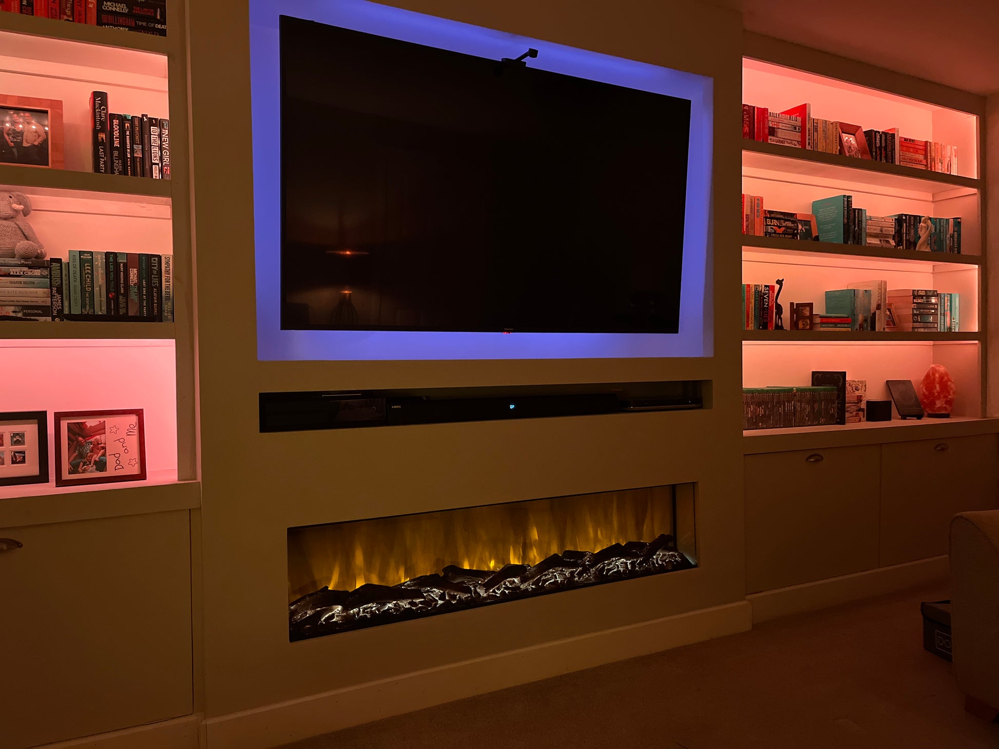 Media Wall Inset Electric Fire with LED Flame and Remote Control